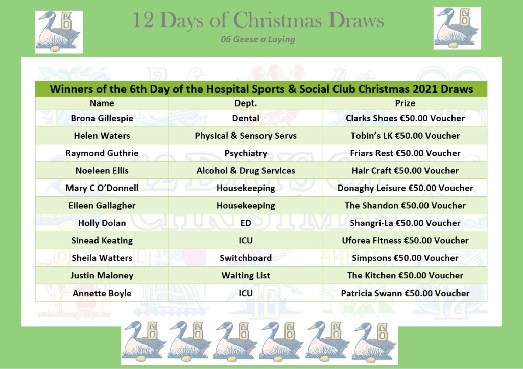 Today’s prizes can be collected from – Linda Marsh @ 086 806 7205