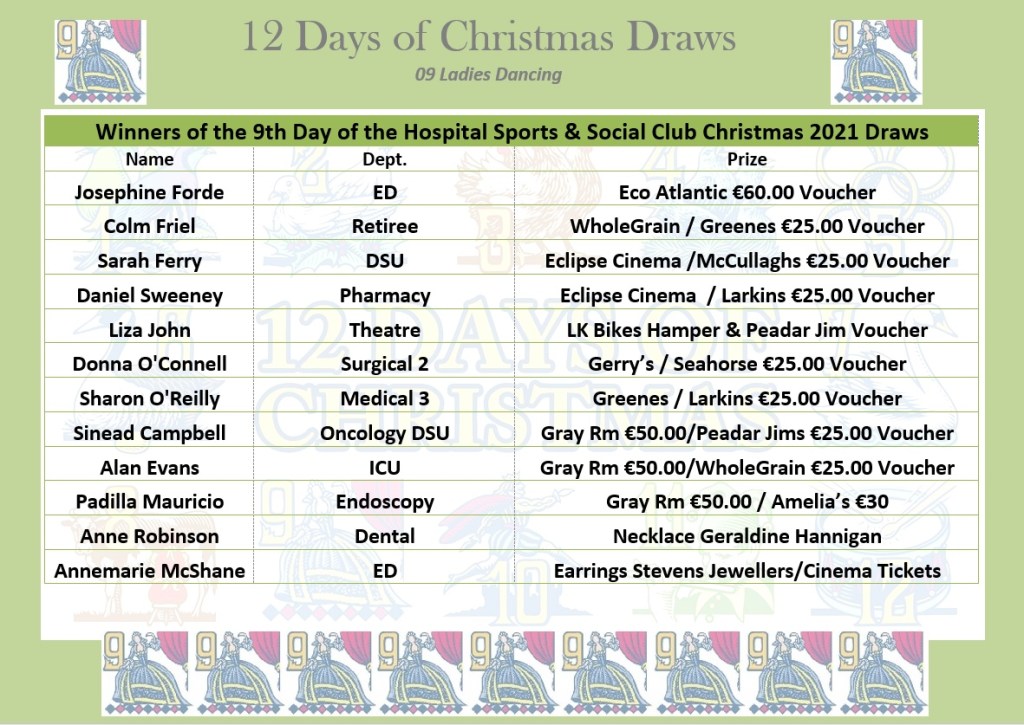 Today’s prizes can be collected from – Fin Begley Ext 3735 @ The Breast Care Unit, LUH