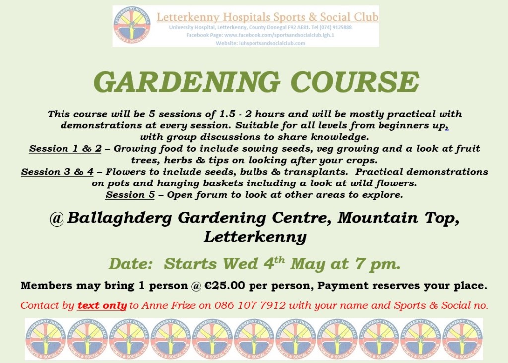 Gardening Course Posted byJohn GallagherApril 26, 2022April 26, 2022Posted inUncategorized New Gardening Course Starting Share this: Click to share on X (Opens in new window) X Click to share on Facebook (Opens in new window) Facebook Like Loading...