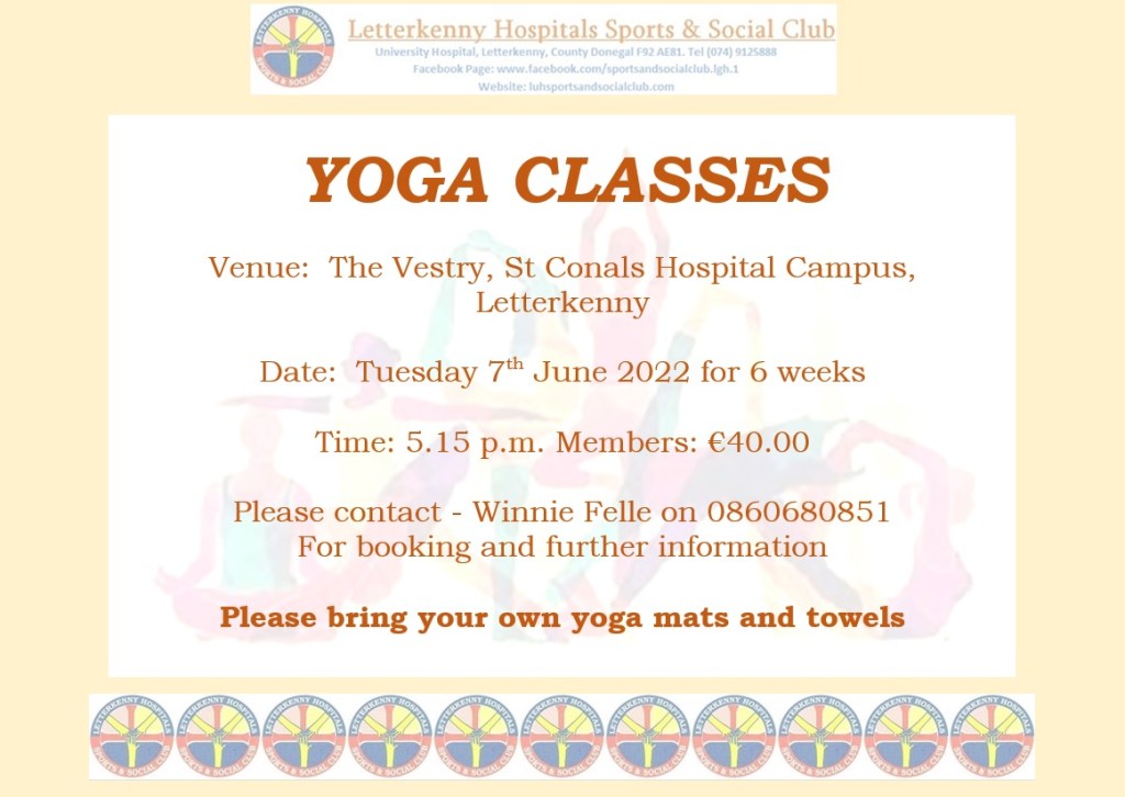 Yoga Classes Starting June Posted byJohn GallagherMay 30, 2022Posted inUncategorized Please contact – Winnie Felle on 086 068 0851For booking and further information Share this: Click to share on X (Opens in new window) X Click to share on Facebook (Opens in new window) Facebook Like Loading...