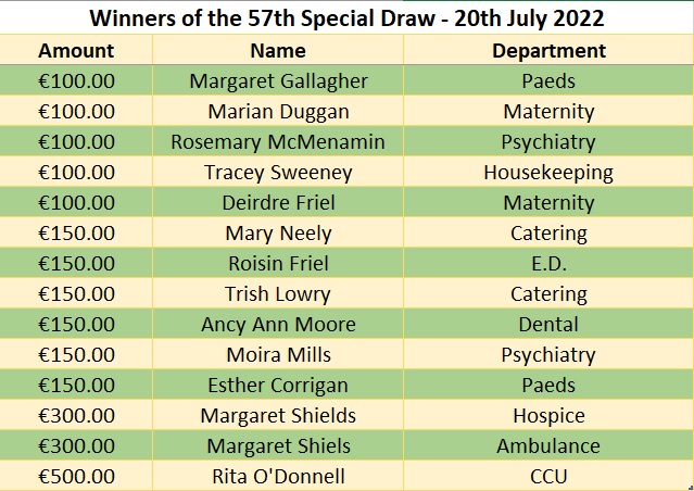 Just to let everyone know that the winners are not to collect the cheques, but to contact Angela McGinley either by email on angela.mcginley@hse.ie or by phone on ext.4458 and let her know where to post the cheques to.