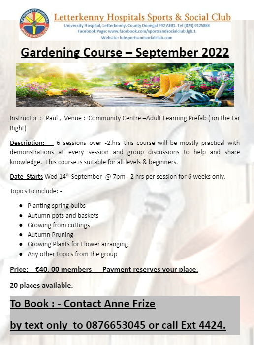 Gardening Course – Sep 2022 Posted by0860801074mSeptember 8, 2022Posted inUncategorized Share this: Click to share on X (Opens in new window) X Click to share on Facebook (Opens in new window) Facebook Like Loading...