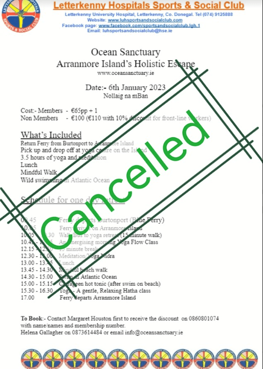 Due to unforeseen circumstances the Ocean Sanctuary retreat on 6th January 2023 has been cancelled. Posted by0860801074mDecember 23, 2022Posted inUncategorized Share this: Click to share on X (Opens in new window) X Click to share on Facebook (Opens in new window) Facebook Like Loading...