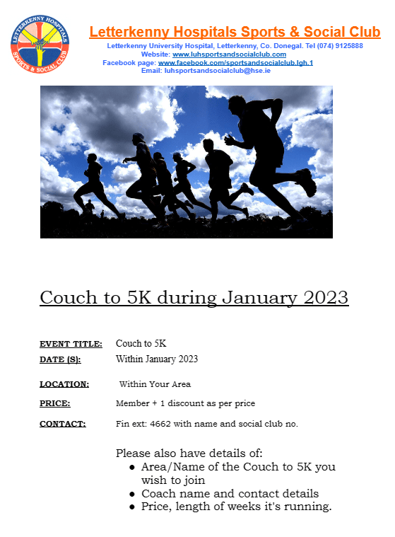 Couch to 5 K – great opportunity for all of our members to join in their own area. See poster for details. Posted by0860801074mJanuary 6, 2023Posted inUncategorized Share this: Click to share on X (Opens in new window) X Click to share on Facebook (Opens in new window) Facebook Like Loading...