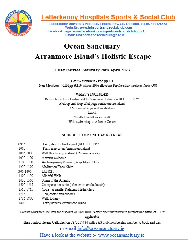 There are still some places available for this lovely 1 day Yoga Retreat in Ocean Sanctuary Arranmore. See poster for more details and on how to book a place. Posted by0860801074mApril 7, 2023Posted inUncategorized Share this: Click to share on X (Opens in new window) X Click to share on Facebook (Opens in new window) Facebook Like Loading...