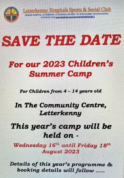 This years Sports & Social Children’s Summer Camp at the Community Centre, Letterkenny, will take place from Wednesday 16th August until Friday 18th August 2023.So save the date if you are interested in enrolling your kids from ages of 4 to 14yrs old. We are currently putting together the programme for this event so details will follow over next few weeks. So please stay tuned.