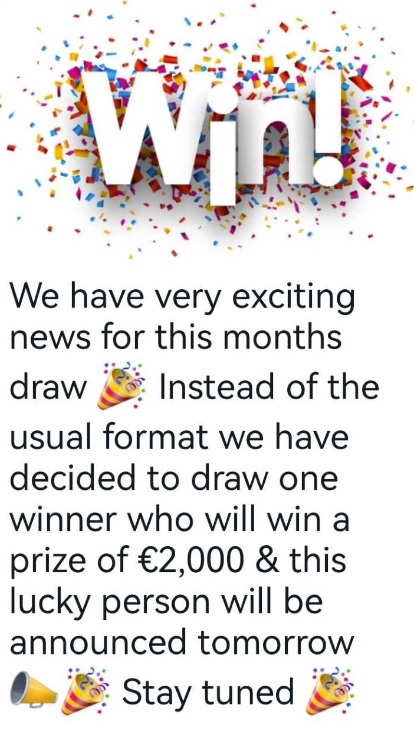 Monthly Draw Posted byJohn GallagherAugust 3, 2023Posted inUncategorized Share this: Click to share on X (Opens in new window) X Click to share on Facebook (Opens in new window) Facebook Like Loading...