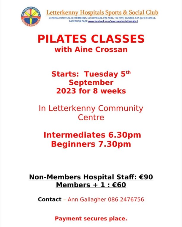 Our Pilates are starting up again with Aine Crossan on Tuesday 5th September 2023. Please see poster attached for further information & booking details. Posted by0860801074mAugust 23, 2023Posted inUncategorized Share this: Click to share on X (Opens in new window) X Click to share on Facebook (Opens in new window) Facebook Like Loading...