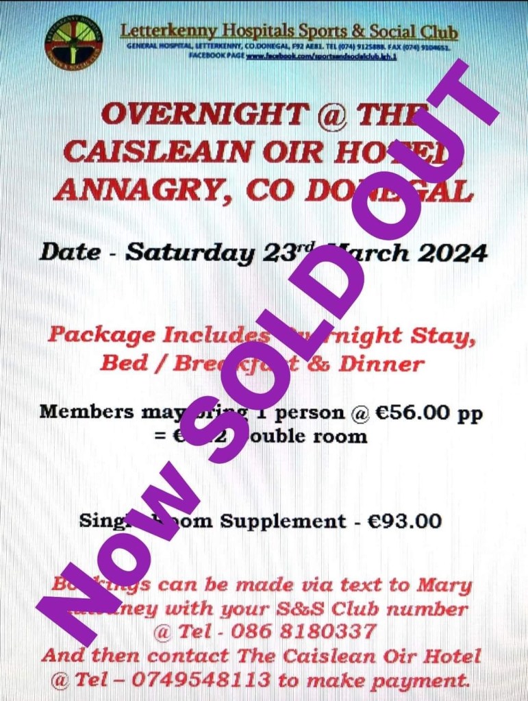 And just like that …..our overnight trip to the beautiful Caisleain Oir Hotel has sold out!! Posted by0860801074mJanuary 11, 2024Posted inUncategorized Share this: Click to share on X (Opens in new window) X Click to share on Facebook (Opens in new window) Facebook Like Loading...