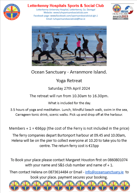 Spaces still available for our lovely retreat day in Ocean Sanctuary – Arranmore Island again on Saturday 27th April. See poster for further information and details on how to book. Posted by0860801074mApril 9, 2024Posted inUncategorized Share this: Click to share on X (Opens in new window) X Click to share on Facebook (Opens in new window) Facebook Like Loading...
