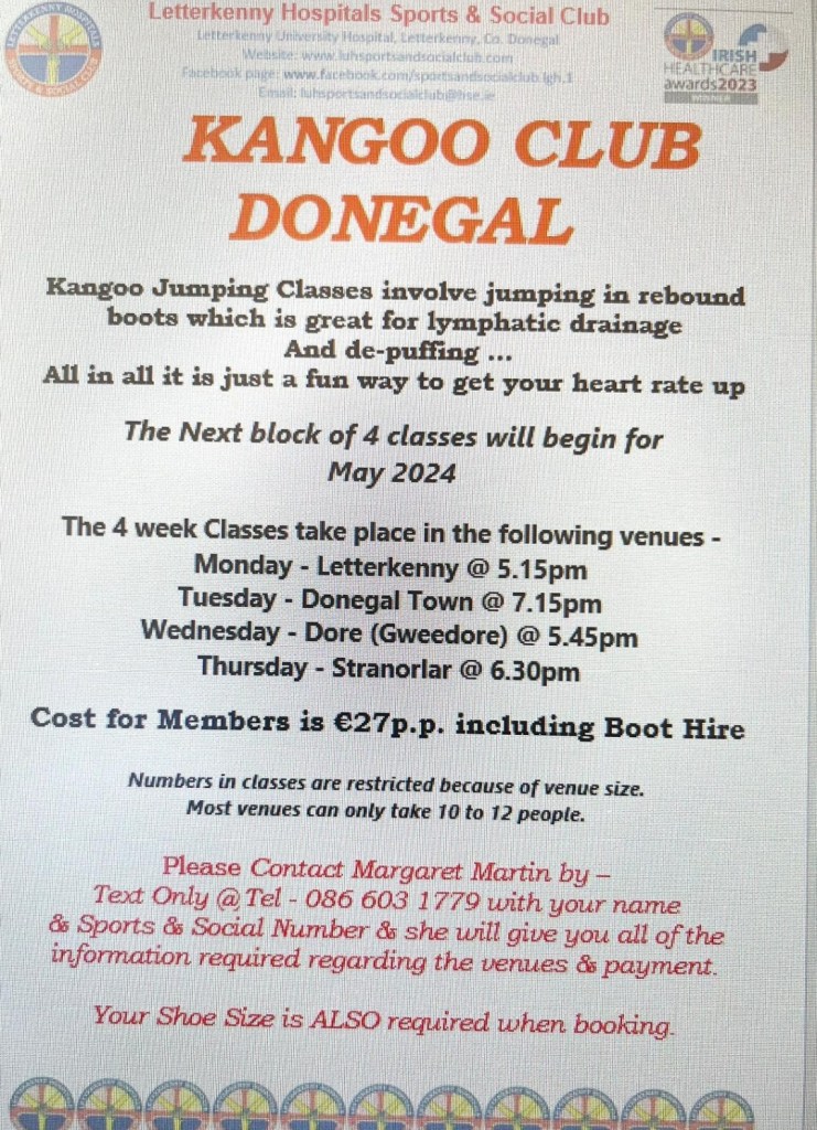 We have classes available for the Kangoo Club for the Month of May 2024. Please see poster attached for further information & booking details. Posted by0860801074mMay 1, 2024Posted inUncategorized Share this: Click to share on X (Opens in new window) X Click to share on Facebook (Opens in new window) Facebook Like Loading...