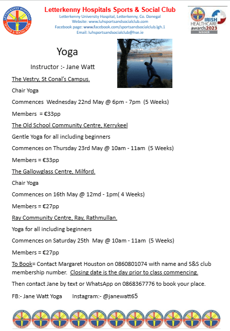 Our next course of Yoga Classes with instructor Jane Watt. For more information and details on how to book, please see details on the poster attached. Posted by0860801074mMay 10, 2024Posted inUncategorized Share this: Click to share on X (Opens in new window) X Click to share on Facebook (Opens in new window) Facebook Like Loading...