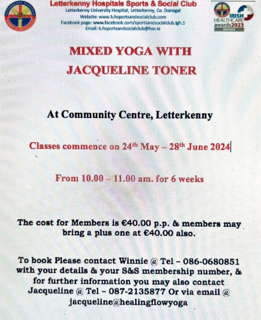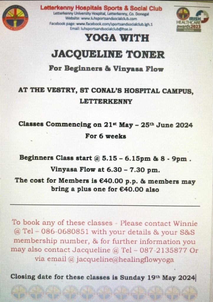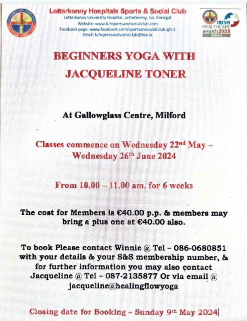 We still have some spaces available for all types of Yoga Classes with Jacqueline Toner starting for May / June 2024. Beginners, Therapeutic, Pre-Natal, Vinyasa Flow…..see posters attached for further information & booking details. Posted by0860801074mMay 15, 2024May 15, 2024Posted inUncategorized Share this: Click to share on X (Opens in new window) X Click to share on Facebook (Opens in new window) Facebook Like Loading...