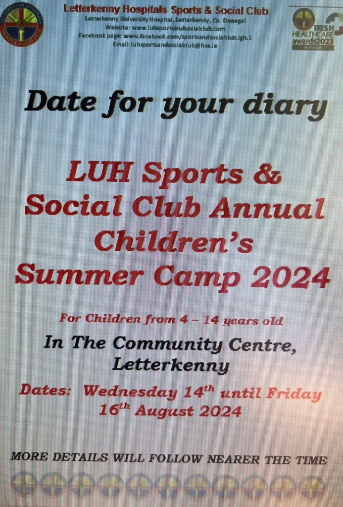 Just to let you all know to keep this important date for your diary. Our Sports & Social Kids Summer Camp will be taking place this year from – Wed 14th to Friday 16th August 2024. We will inform you of more details nearest the time to book your places.