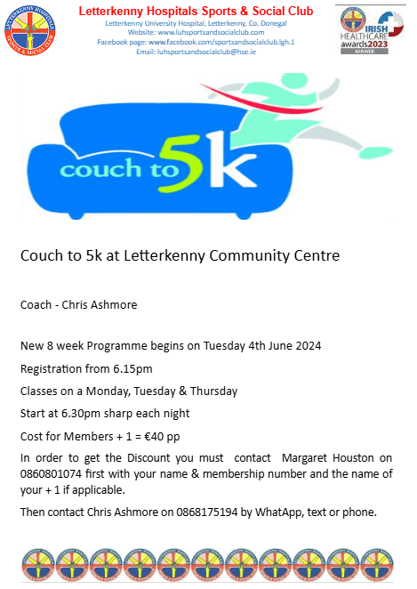 Our new Couch to 5k Class starts on Tuesday June 4th, 2024 at Letterkenny Community Centre. See poster for further information and details on how to book your place. Posted by0860801074mMay 30, 2024Posted inUncategorized Share this: Click to share on X (Opens in new window) X Click to share on Facebook (Opens in new window) Facebook Like Loading...