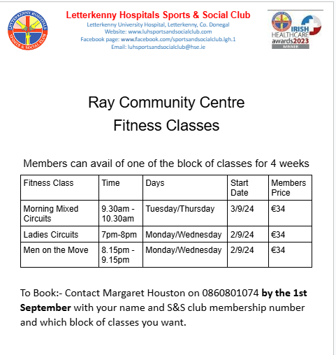 We have some Fitness Classes for our Members. Members can choose one block of classes for 4 weeks at a reduced rate. To book see poster for further information and details. Posted by0860801074mAugust 15, 2024Posted inUncategorized Share this: Click to share on X (Opens in new window) X Click to share on Facebook (Opens in new window) Facebook Like Loading...