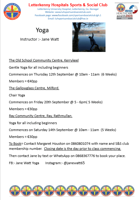 Our next set of Yoga Classes for members with Instructor – Jane Watt are commencing for September. See poster for further information and details on how to book. Posted by0860801074mSeptember 1, 2024Posted inUncategorized Share this: Click to share on X (Opens in new window) X Click to share on Facebook (Opens in new window) Facebook Like Loading...