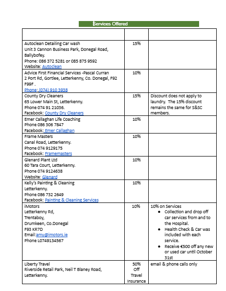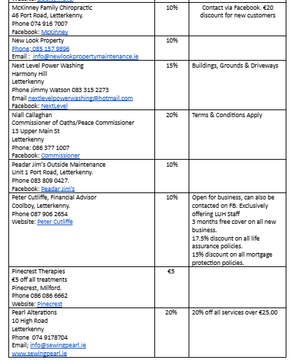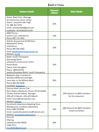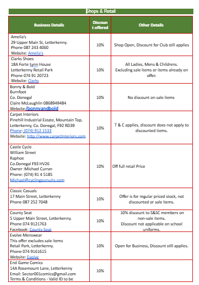 Attached are list of our Retail Businesses which offer some discounts to our S&S club members. Please remember to use your LUH S&S club membership card when shopping & support all of the businesses that kindly offer discounts to our members over the years.
