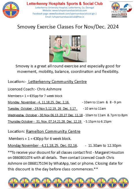 Our next course of Smovey Classes are starting on October 29th. See poster for further information and details on all classes and on how to book. Posted by0860801074mOctober 30, 2024Posted inUncategorized Share this: Click to share on X (Opens in new window) X Click to share on Facebook (Opens in new window) Facebook Like Loading...