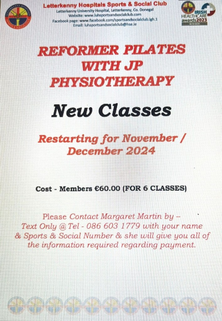 Reformer Pilates with JP Physiotherapy will be restarting. Please see poster attached for further information & booking details. Posted by0860801074mOctober 31, 2024Posted inUncategorized Share this: Click to share on X (Opens in new window) X Click to share on Facebook (Opens in new window) Facebook Like Loading...