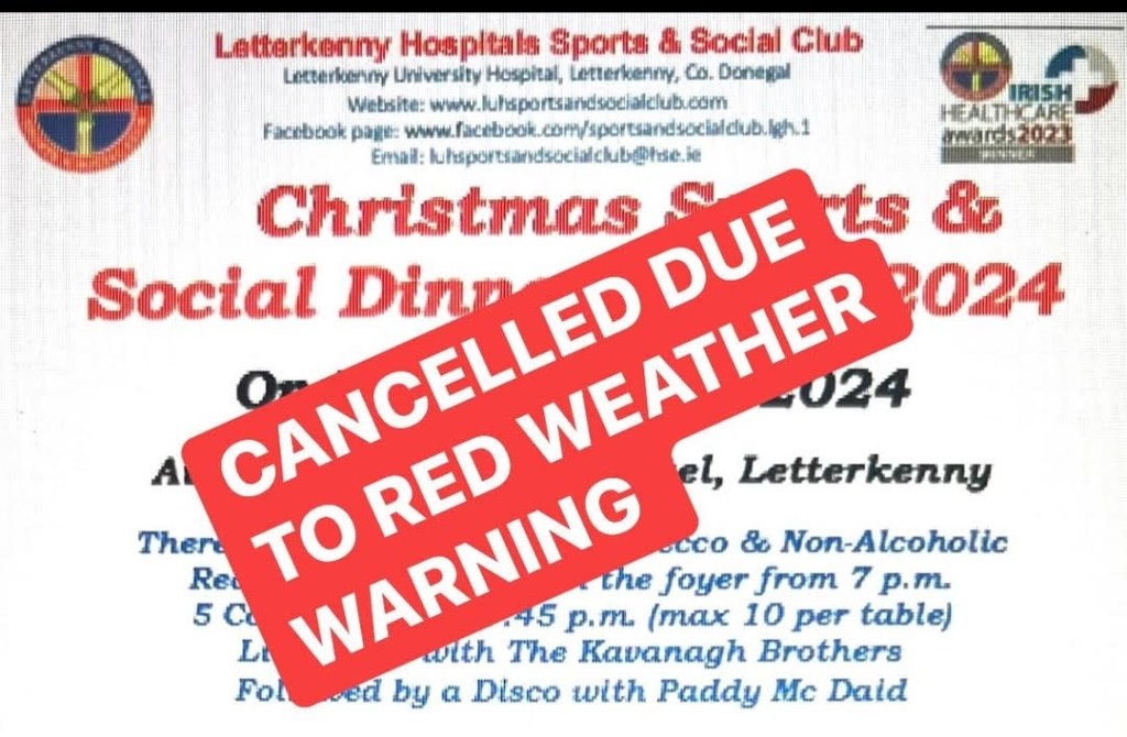 !! IMPORTANT MESSAGE !! PLEASE SHARE Unfortunately a decision has been taken by The National & Regional Managers, The National Incident Team, and the Gardai have advised that no travel must be made with A Red Weather Warning in place and that all functions should be cancelled under the circumstances. The Road Safety Authority (RSA) is also advising road users in area affected by the RED warning to avoid any travel during the storm window. Again we are very sorry to be delivering this news after all of the hard work, a discussion will take place and a decision made regarding the possibility of another date. We will inform you all in due course.