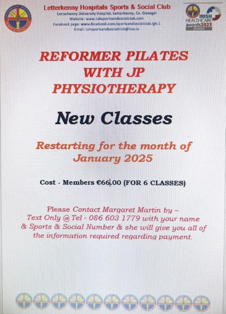 Our Reformer Pilates for JP Physiotherapy will be starting again for the month of January 2025. Please see poster for further information and booking details. Posted by0860801074mJanuary 2, 2025Posted inUncategorized Share this: Click to share on X (Opens in new window) X Click to share on Facebook (Opens in new window) Facebook Like Loading...
