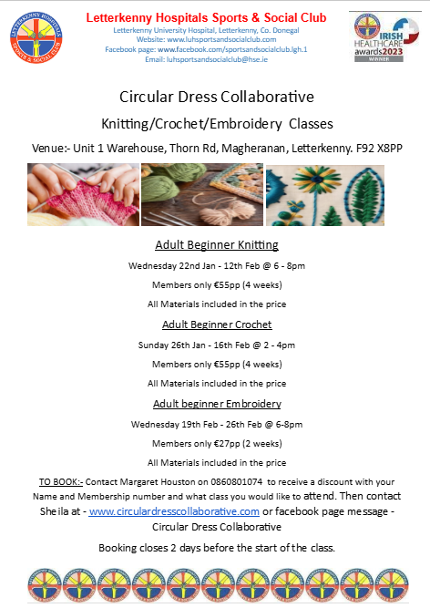 Some exciting new classes starting. Knitting/Crochet/Embroidery!!!!! For more information and details on how to book see poster attached. Posted by0860801074mJanuary 16, 2025January 20, 2025Posted inUncategorized Share this: Click to share on X (Opens in new window) X Click to share on Facebook (Opens in new window) Facebook Like Loading...