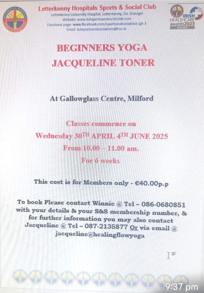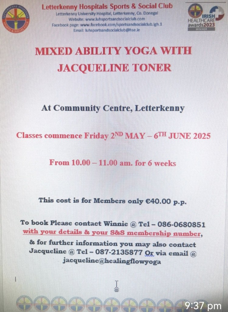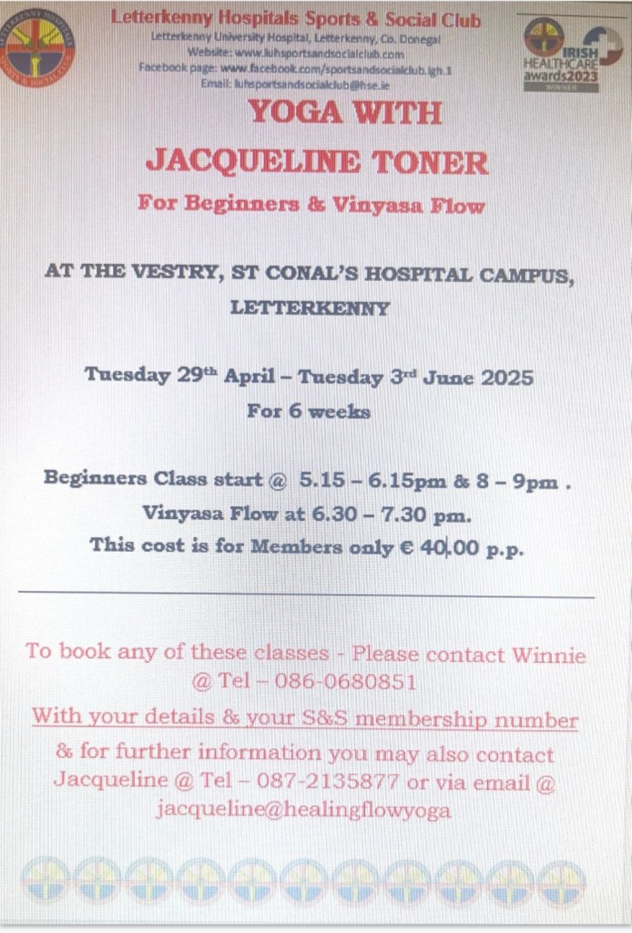 We have a selection of Yoga Classes with Jacqueline Toner Re-Starting in various locations as mentioned in the posters below for April – June 2025. Please see posters attached for further information & booking details. For S&S club members only. Posted by0860801074mApril 24, 2025Posted inUncategorized Share this: Click to share on X (Opens in new window) X Click to share on Facebook (Opens in new window) Facebook Like Loading...