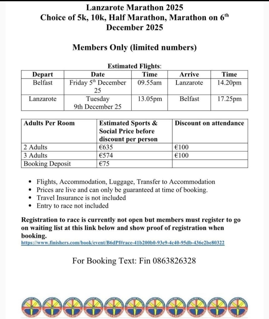 We are delighted to be able to offer this amazing opportunity to take part in the Lanzarote Marathon 2025. Please note this trip is for our S&S club members only and there will be limited numbers available, so please book early to avoid disappointment. This link to this event for registration is https://www.finishers.com/book/event/B6dPf#race-41b200b0-93e9-4c40-95db-436e2be80322 This is the link to register for Lanzarote marathon.
