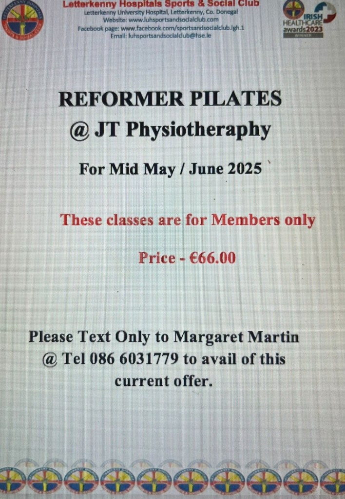 We have out Reformer Pilates with JT Physio starting again for Mid May/June 2025. Please see poster attached for further information & booking details. Posted by0860801074mMay 19, 2025Posted inUncategorized Share this: Click to share on X (Opens in new window) X Click to share on Facebook (Opens in new window) Facebook Like Loading...