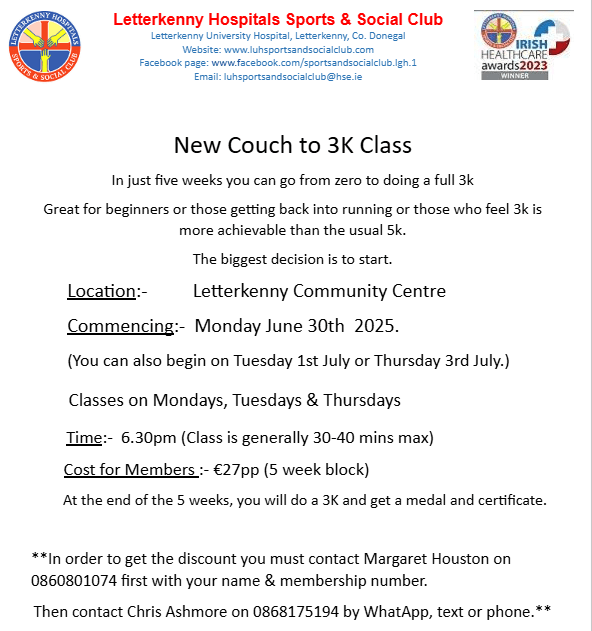 We have a new Couch to 3k starting on 30th June for 5 weeks. This is a opportunity for the members travelling to Lanzarote for the run. See poster attached for information and details on how to book your place. Posted by0860801074mJune 15, 2025Posted inUncategorized Share this: Click to share on X (Opens in new window) X Click to share on Facebook (Opens in new window) Facebook Like Loading...