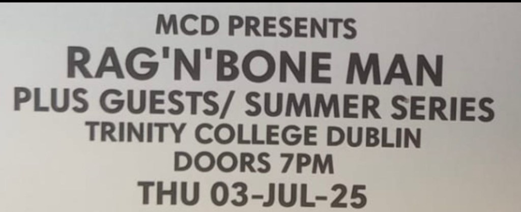 A ticket to Rag’n’Bone Man & Guests for Trinity College Dublin Summer Series 2025 on Thursday 3rd July has been kindly donated for raffle to Our Letterkenny Hospitals Sports and Social Club. The donor, who is a doctor in our hospital wanted to remain anonymous, so we would like to thank him very much for his kind gesture. We had a raffle for our members, but the lady who won this prize was unable to attend on the night & asked for it to be re-raffled again. To avoid going around in circles with this & due to the fact it is a single ticket & a midweek event in Dublin, we would kindly as any of our members only who are interested in this prize to please like & comment on this post on Facebook or if not on Facebook please text or WhatsApp Margaret on 0860801074 and the draw ill be done tomorrow. For anyone who is a fan & able to attend this is a lovely prize for what promises to be a great outdoor event at Trinity College. So, please like & comment on Facebook or text/WhatsApp Margaret on 0860801074. Winner will be announced tomorrow. Good luck everyone.