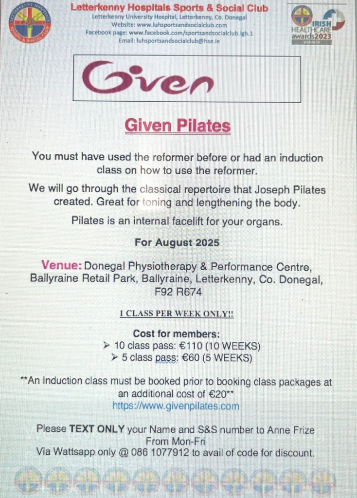 We have Given Pilates restarting for August 2025. Please see poster for further information & booking details…..Please note that it is only 1 class per week that can be booked & these classes @ this price are for LUH Sports & Social members ONLY. Posted by0860801074mAugust 9, 2025Posted inUncategorized Share this: Click to share on X (Opens in new window) X Click to share on Facebook (Opens in new window) Facebook Like Loading...