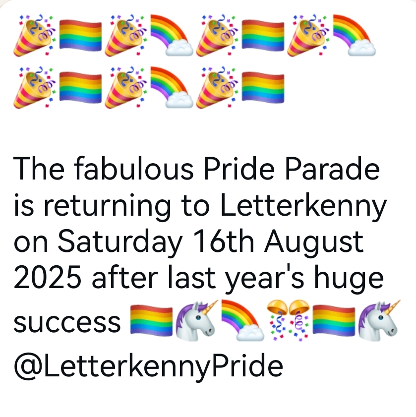 For the last number of years some of our Letterkenny Sports & Social Club committee members proudly participated oin the parade behind our S&S Banner & this year we thought we could increase our numbers and support by inviting our S&S club members and their families to get involved behind our LUH Sports & Social Club Banner on Saturday 16th August 2025. Pride is all about community. It is a magnificent celebration of diversity, a time to bring people together, and of course, a big day/week of fun. But beyond that, it is about showing members of the LGBTQ + community who otherwise might find themselves feeling marginalised, that they belong in this town, and in this county. In particular, we feel there is a huge need to show young LGBTO + folks that they do not need to leave their hometown in order to feel welcome. The weekend from 14th to 16th August will consist of a number of events around the town, including all-ages family events, concerts, social gatherings and it will culminate with the march itself on Saturday 16th August, starting from An Grianan Theatre from 3.30pm.