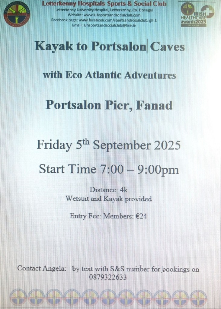 We have rescheduled The Kayaking trip now for 5th Sept 2025 & have availability for our members to Kyak to the Caves in Portsalon with Eco Atlantic Adventures. Please see poster attached for further information & booking details. Posted by0860801074mAugust 14, 2025Posted inUncategorized Share this: Click to share on X (Opens in new window) X Click to share on Facebook (Opens in new window) Facebook Like Loading...
