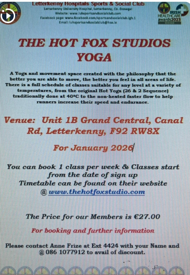 Hot Fox Yoga – This is a full schedule of classes suitable for any level at a variety of temperatures. Please see poster attached for further information and details on how to book. Posted by0860801074mJanuary 7, 2026Posted inUncategorized Share this: Click to share on X (Opens in new window) X Click to share on Facebook (Opens in new window) Facebook Like Loading...