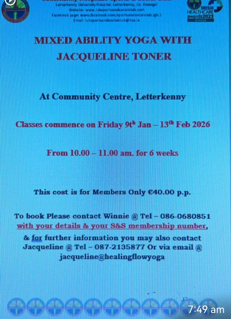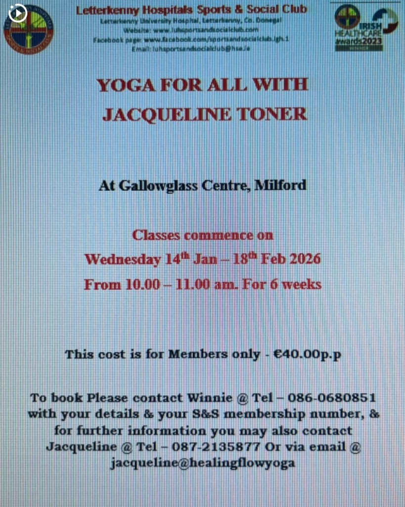 We have a selection of Yoga Classes with Jacqueline Toner for Jan/Feb 2026. Please see posters attached for further information & booking details. Posted by0860801074mJanuary 7, 2026Posted inUncategorized Share this: Click to share on X (Opens in new window) X Click to share on Facebook (Opens in new window) Facebook Like Loading...