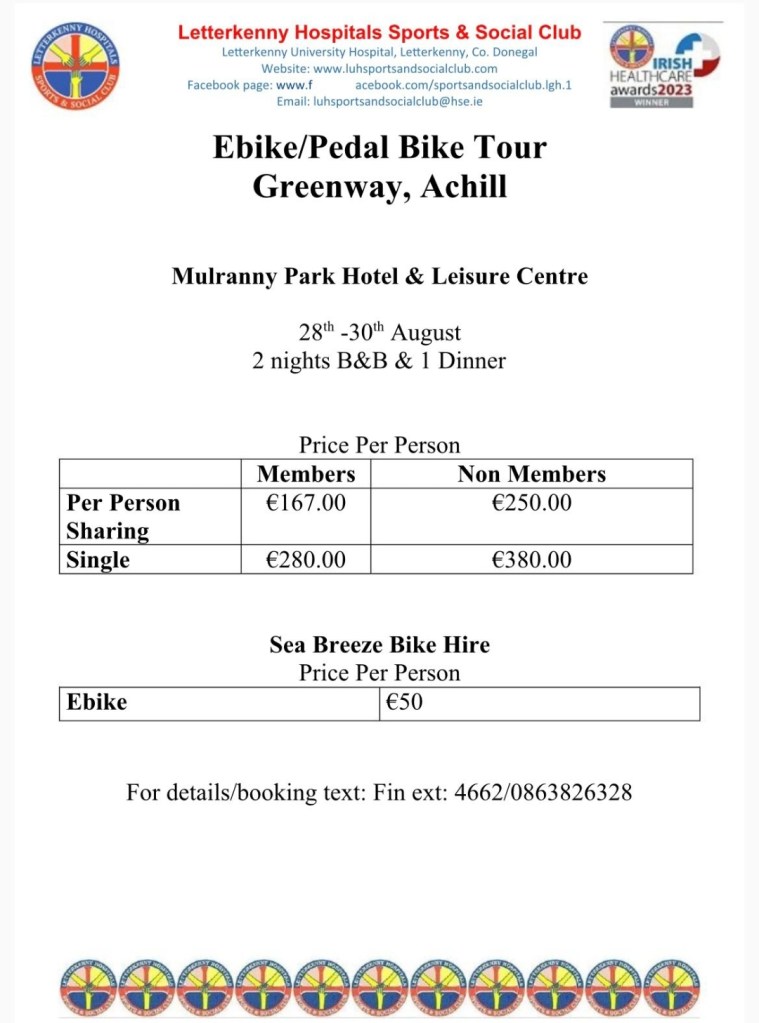 After last years successful E-bike tour we have availability for another trip to Greenway, Achill on 28th – 30th August 2026. Please see poster attached for further information & booking details. Posted by0860801074mApril 7, 2026Posted inUncategorized Share this: Share on X (Opens in new window) X Share on Facebook (Opens in new window) Facebook Like Loading...